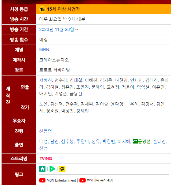 현역가왕 기본정보