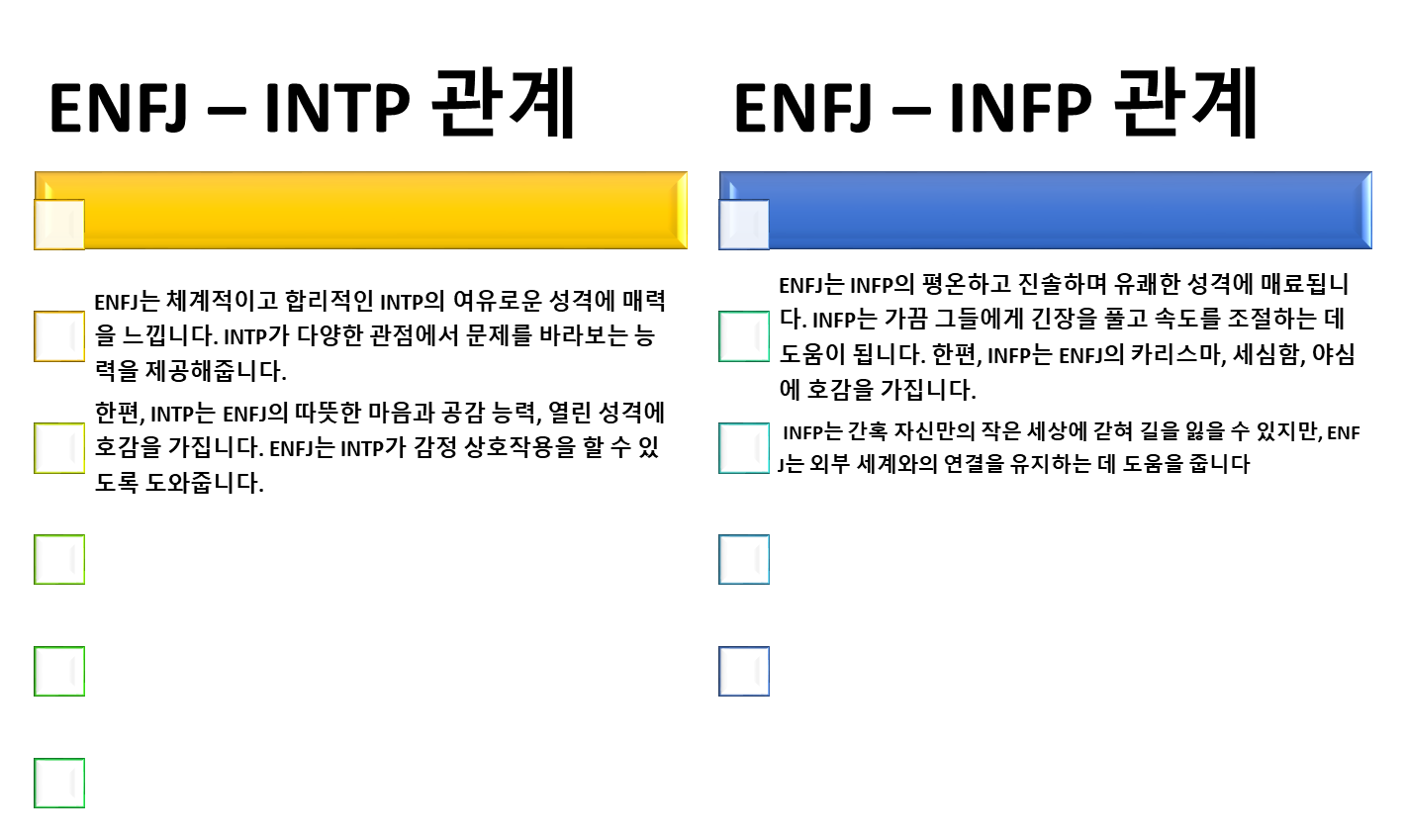 MBTI 궁합표를 보시다시피 ENFJ는 INTP, INFP와 가장 잘 어울립니다.