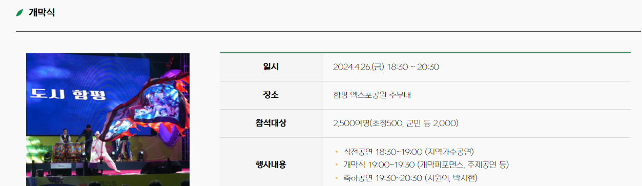 장소 : 함평 엑스포 공원 주무대