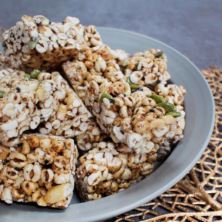 마을에서 맛있게 볶은 보리튀밥을 직접 버무려