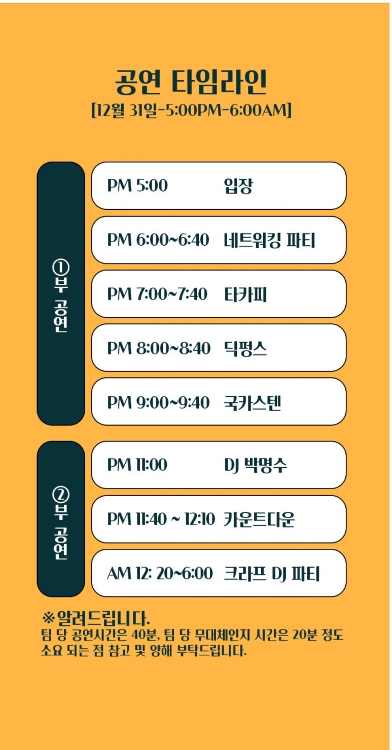 지금 예매중 | 2023. 12. 31. (일) 17:00 ~ 익일 06:00 그리고 카운트다운 |