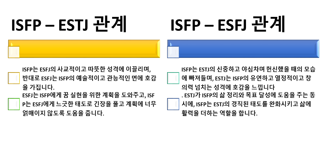 ISFP와 잘어울리는 궁합 ESTJ와 ESFJ